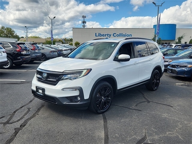 Certified. 2022 Honda Pilot Special Edition 4D Sport Utility 9-Speed Automatic AWD 3.5L V6 24V SOHC i-VTEC 19/26 City/Highway MPG HondaTrue Certified Details: * Limited Warranty: 24 Month/100,000 Mile (whichever comes first) after new car warranty expires or from certified purchase date * Transferable Warranty * Warranty Deductible: $0 * Vehicle History * 182 Point Inspection * Powertrain Limited Warranty: 84 Month/100,000 Mile (whichever comes first) from original in-service date * Vehicles purchased within New Vehicle Limited Warranty period: extends New Vehicle Limited Warranty to 5 years*/60,000 miles*. Honda Care Roadside Assistance for 2 year/100,000 miles (whichever occurs first). Up to two complimentary oil changes within the first year of ownership. SiriusXM 90-Day Trial. * Roadside Assistance