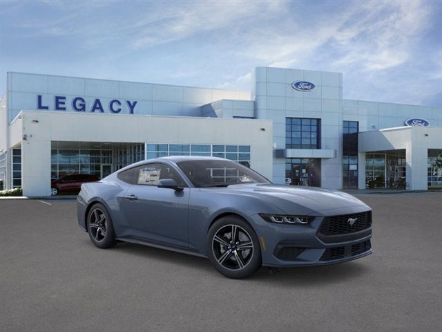 Vapor Blue Metallic 2025 Ford Mustang RWD 10-Speed Automatic EcoBoost 2.3L I4 GTDi DOHC Turbocharged VCT 4-Wheel Disc Brakes, ABS brakes, Air Conditioning, Alloy wheels, AM/FM Stereo, Auto High-beam Headlights, Automatic temperature control, Brake assist, Bumpers: body-color, Compass, Delay-off headlights, Driver door bin, Driver vanity mirror, Dual front impact airbags, Dual front side impact airbags, Electronic Stability Control, Emergency communication system: 911 Assist, Exterior Parking Camera Rear, Four wheel independent suspension, Front anti-roll bar, Front Bucket Seats, Front Center Armrest, Front dual zone A/C, Front reading lights, Fully automatic headlights, Illuminated entry, Knee airbag, Leather Shift Knob, Low tire pressure warning, Occupant sensing airbag, Outside temperature display, Overhead airbag, Overhead console, Panic alarm, Passenger door bin, Passenger vanity mirror, Power door mirrors, Power steering, Power windows, Radio data system, Rain sensing wipers, Rear anti-roll bar, Rear Parking Sensors, Rear window defroster, Remote keyless entry, Speed control, Speed-sensing steering, Speed-Sensitive Wipers, Split folding rear seat, Sport steering wheel, Steering wheel mounted audio controls, SYNC 4, Tachometer, Telescoping steering wheel, Tilt steering wheel, Traction control, Trip computer, Variably intermittent wipers, Voltmeter, and Wheels: 18x 8Machined-Face Aluminum. 21/32 City/Highway MPG At our dealership, we have devoted ourselves to helping and serving our customers to the best of our ability. We believe the cars we offer are the highest quality and ideal for your life needs. We understand that you rely on our web site for accurate information, and it is our pledge to deliver you relevant, correct, and abundant content. Please do not hesitate to contact us with any questions you may have. Our staff is happy to answer any and all inquiries in a timely fashion. We look forward to doing business with you!