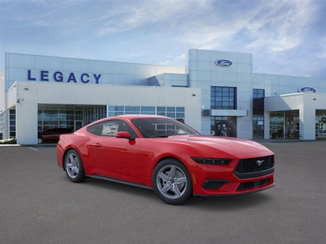 Race Red 2026 Ford Mustang EcoBoost RWD 10-Speed Automatic EcoBoost 2.3L I4 GTDi DOHC Turbocharged VCT 1st Row Carpeted Black Floor Mats, 4-Wheel Disc Brakes, ABS brakes, Air Conditioning, Alloy wheels, AM/FM Stereo, Auto High-beam Headlights, Automatic temperature control, Brake assist, Bumpers: body-color, Compass, Delay-off headlights, Driver door bin, Driver vanity mirror, Dual front impact airbags, Dual front side impact airbags, Electronic Stability Control, Emergency communication system: 911 Assist, Exterior Parking Camera Rear, Four wheel independent suspension, Front anti-roll bar, Front Bucket Seats, Front Center Armrest, Front dual zone A/C, Front reading lights, Fully automatic headlights, Illuminated entry, Internet access capable: FordPass Connect, Knee airbag, Leather Shift Knob, Low tire pressure warning, Occupant sensing airbag, Outside temperature display, Overhead airbag, Overhead console, Panic alarm, Passenger door bin, Passenger vanity mirror, Power door mirrors, Power steering, Power windows, Radio data system, Rain sensing wipers, Rear anti-roll bar, Rear Parking Sensors, Rear window defroster, Remote keyless entry, Speed control, Speed-sensing steering, Speed-Sensitive Wipers, Split folding rear seat, Sport steering wheel, Steering wheel mounted audio controls, SYNC 4, Tachometer, Telescoping steering wheel, Tilt steering wheel, Traction control, Trip computer, Variably intermittent wipers, Voltmeter, and Wheels: 18x 8Painted Shadow Silver Cast Alum. 21/32 City/Highway MPG At our dealership, we have devoted ourselves to helping and serving our customers to the best of our ability. We believe the cars we offer are the highest quality and ideal for your life needs. We understand that you rely on our web site for accurate information, and it is our pledge to deliver you relevant, correct, and abundant content. Please do not hesitate to contact us with any questions you may have. Our staff is happy to answer any and all inquiries in a timely fashion. We look forward to doing business with you!