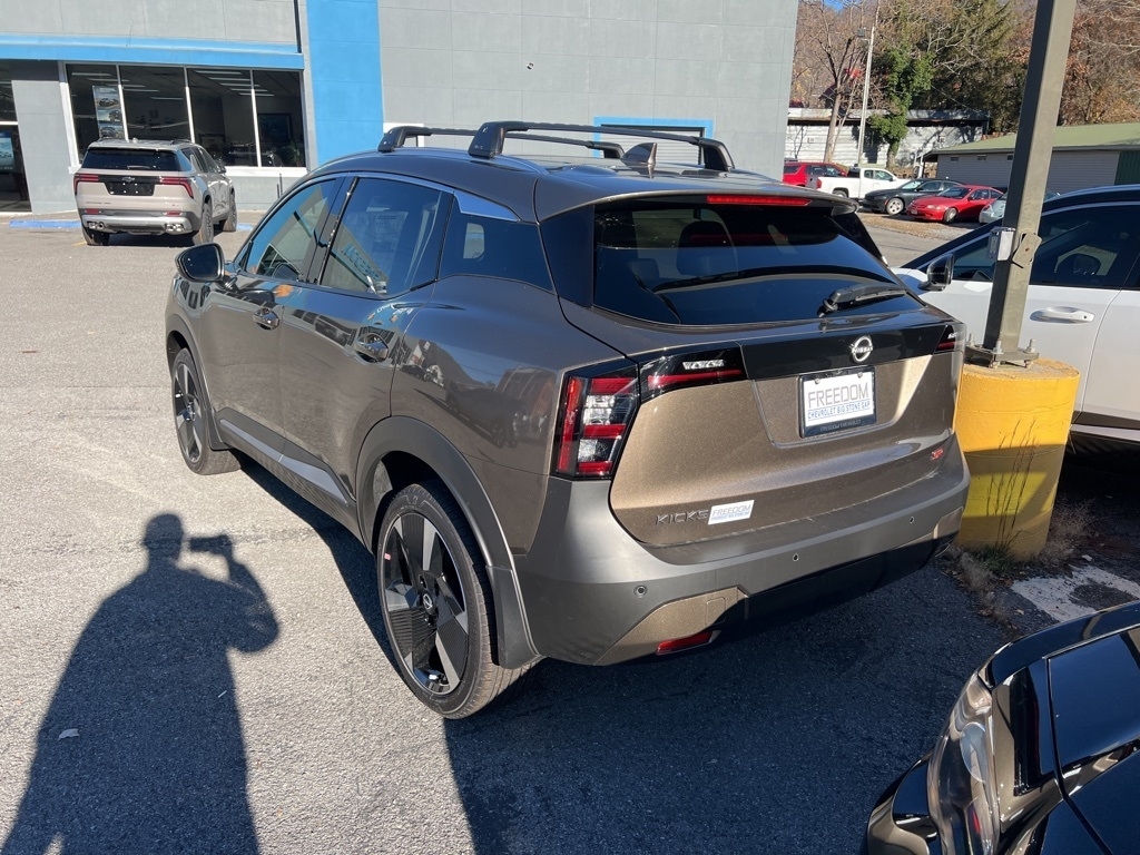 Clean CARFAX. Odometer is 9108 miles below market average! 28/35 City/Highway MPG This 2025 Canyon Bronze Metallic Nissan Kicks SR FWD is well equipped and includes these features and benefits: *CLEAN VEHICLE HISTORY REPORT*, *ONE OWNER*, *BLUETOOTH*, *NAVIGATION*, *USB PORT*, *BLIND SPOT MONITOR*, *PRE COLLISION SYSTEM*, *LANE KEEP/DEPARTURE ASSIST*, *APPLE CARPLAY/ANDROID AUTO*, *XM RADIO*, *LEATHER*, 17Alloy Wheels, Alloy wheels, AM/FM radio: Sirius, Auto High-beam Headlights, Automatic temperature control, Brake assist, Bumpers: body-color, Electronic Stability Control, Front anti-roll bar, Fully automatic headlights, Illuminated entry, Leather Shift Knob, Leather steering wheel, Outside temperature display, Power door mirrors, Radio: AM/FM Audio System, Rear anti-roll bar, Remote keyless entry, Security system, Speed-sensing steering, Spoiler, Sport Cloth/Leatherette Seat Trim, Sport steering wheel, Steering wheel mounted audio controls, Telescoping steering wheel, Traction control, Turn signal indicator mirrors, Wireless Apple CarPlay/Wireless Android Auto. THERES NOTHING LIKE FREEDOM!!!! 2025 Nissan Kicks SR