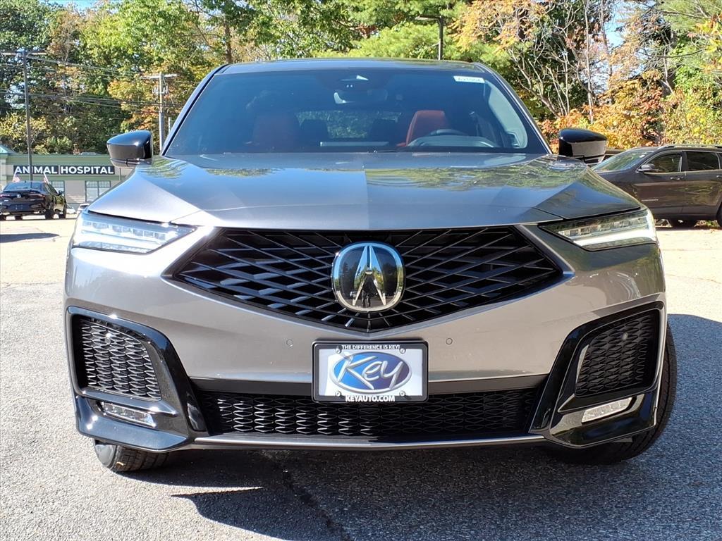 2026 Acura MDX A-Spec SH-AWD Gray Nh-885mx/Red Leather. Please call 603-319-0474 or come to Key Acura of Portsmouth today! This MDX A-Spec is nicely equipped with Nh-885mx/Red Leather, 19 Speakers, 3rd row seats: split-bench, 4-Wheel Disc Brakes, ABS brakes, Air Conditioning, Alloy wheels, Anti-whiplash front head restraints, Apple CarPlay/Android Auto, Audio memory, Auto High-beam Headlights, Auto tilt-away steering wheel, Auto-dimming Rear-View mirror, Automatic temperature control, Brake assist, Bumpers: body-color, Compass, Delay-off headlights, Driver door bin, Driver vanity mirror, Dual front impact airbags, Dual front side impact airbags, Electronic Stability Control, Emergency communication system: AcuraLink, Exterior Parking Camera Rear, Four wheel independent suspension, Front anti-roll bar, Front Bucket Seats, Front Center Armrest, Front dual zone A/C, Front fog lights, Front reading lights, Fully automatic headlights, Garage door transmitter: HomeLink, Heated & Ventilated Front Sport Seats, Heated door mirrors, Heated front seats, HVAC memory, Illuminated entry, Knee airbag, Lane departure: Lane Keeping Assist System (LKAS) active, Leather steering wheel, Low tire pressure warning, Memory seat, Navigation system: Google built-in (3-Years Unlimited Data Plan for In-Vehicle Apps), Occupant sensing airbag, Outside temperature display, Overhead airbag, Overhead console, Panic alarm, Passenger door bin, Passenger vanity mirror, Perforated Premium Milano Lthr & Ultrasuede Seats, Power door mirrors, Power driver seat, Power Liftgate, Power moonroof, Power passenger seat, Power steering, Power windows, Premium audio system: Acura/ELS Studio 3D, Radio data system, Radio: Bang & Olufsen Premium Audio System, Rain sensing wipers, Rear air conditioning, Rear anti-roll bar, Rear reading lights, Rear seat center armrest, Rear window defroster, Rear window wiper, Remote keyless entry, Security system, Speed control, Speed-sensing steering, Speed-Sensitive Wipers, Split