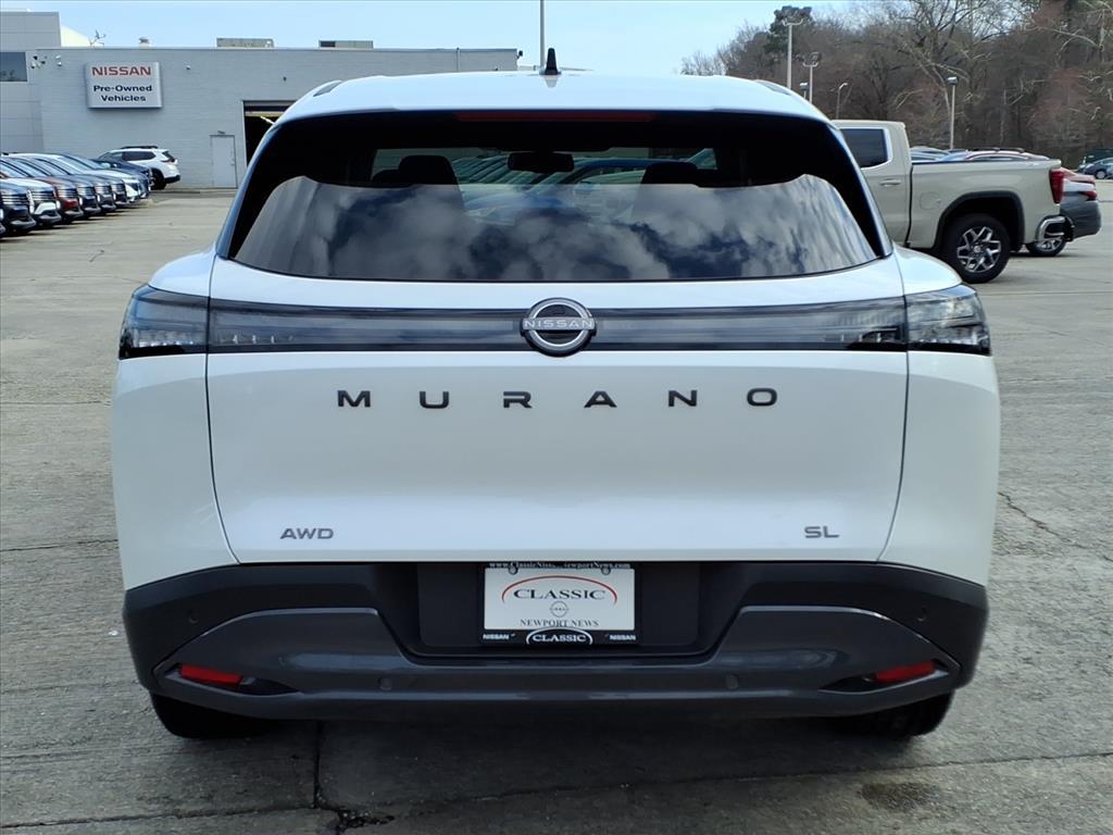 Everest White Pearl Tricoat 2026 Nissan Murano SL AWD 9-Speed Automatic I4 We Deliver Anywhere, Extended Service Programs Available, 9-Speed Automatic, AWD, 10 Speakers, 20Alloy Wheels, 4-Wheel Disc Brakes, ABS brakes, Air Conditioning, Alloy wheels, AM/FM radio: SiriusXM w/360L, Auto High-beam Headlights, Auto-dimming Rear-View mirror, Automatic temperature control, Brake assist, Bumpers: body-color, Carpeted Floor & Cargo Mats, Child-Seat-Sensing Airbag, Compass, Delay-off headlights, Driver door bin, Driver vanity mirror, Dual front impact airbags, Dual front side impact airbags, Electronic Stability Control, Emergency communication system: NissanConnect Services, Four wheel independent suspension, Front anti-roll bar, Front Bucket Seats, Front Center Armrest, Front dual zone A/C, Front reading lights, Fully automatic headlights, Garage door transmitter: myQ Connected Garage, Grained Splash Guards, Heated door mirrors, Heated Front Bucket Seats, Heated front seats, Heated steering wheel, Illuminated entry, Interior Accent Lighting, Knee airbag, Low tire pressure warning, Memory seat, Navigation system: NissanConnect with Navigation and Services, Occupant sensing airbag, Outside temperature display, Overhead airbag, Overhead console, Panic alarm, Passenger door bin, Passenger vanity mirror, Power door mirrors, Power driver seat, Power Liftgate, Power moonroof: Panoramic, Power passenger seat, Power steering, Power windows, Premium Paint, Prima-Tex Leatherette Seat Trim w/Perforation, Radio data system, Radio: NissanConnect w/Hybrid Radio, Rear anti-roll bar, Rear reading lights, Rear seat center armrest, Rear side impact airbag, Rear window defroster, Rear window wiper, Remote keyless entry, Security system, Speed control, Speed-Sensitive Wipers, Split folding rear seat, Spoiler, Steering wheel mounted audio controls, Tachometer, Telescoping steering wheel, Tilt steering wheel, Traction control, Trip computer, Turn signal indicator mirrors, USB Charging Cables, Variably intermittent wipers, Wireless Apple CarPlay/Wireless Android Auto, 9-Speed Automatic, AWD. Recent Arrival! 21/27 City/Highway MPG Price includes: $4000 - Nissan Customer Cash. Exp. 03/02/2026