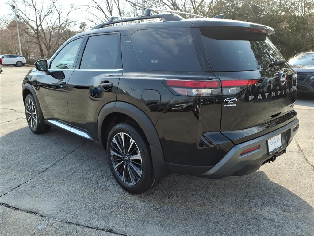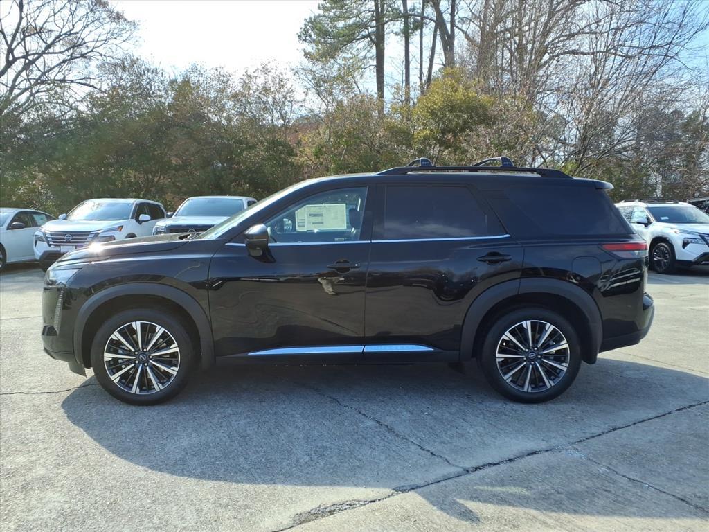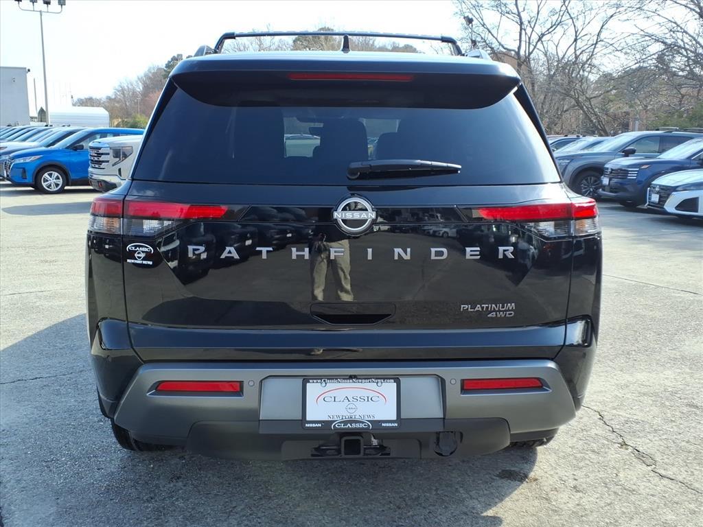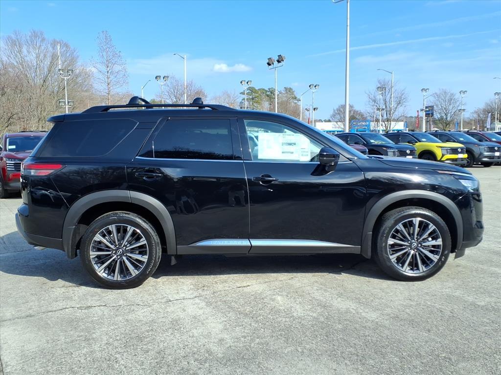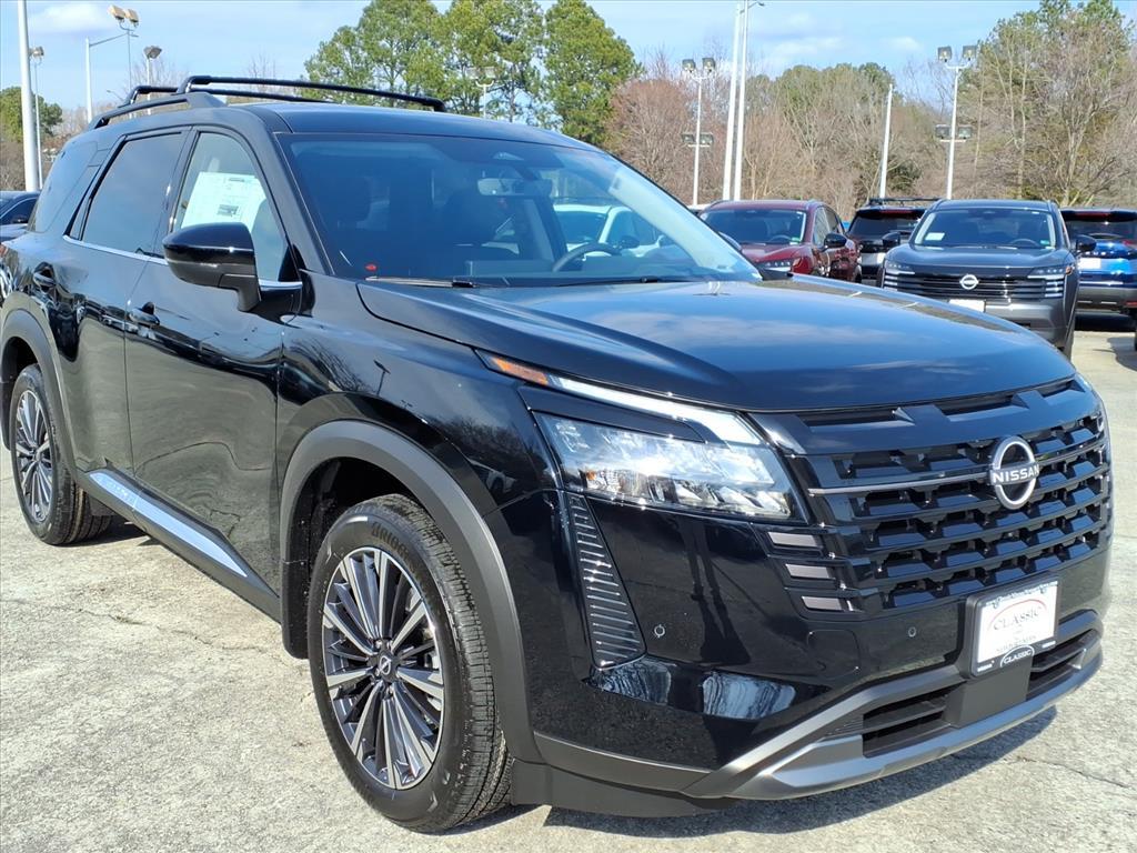 Super Black 2026 Nissan Pathfinder Platinum 4WD 9-Speed Automatic 3.5L V6 DOHC We Deliver Anywhere, Extended Service Programs Available, 4WD, 13 Speakers, 3rd row seats: bench, 4-Piece Black Splash Guards, 4-Wheel Disc Brakes, ABS brakes, Air Conditioning, Alloy wheels, AM/FM radio: SiriusXM w/360L, Auto High-beam Headlights, Auto tilt-away steering wheel, Auto-dimming Rear-View mirror, Automatic temperature control, Bench Seat Carpeted Floor Mats, Bodyside moldings, Bose Premium Audio System, Brake assist, Bumpers: body-color, Cargo Area Protector, Cargo Net, Cargo Package, Climate Controlled Front Bucket Seats, Cross Bars, Delay-off headlights, Driver door bin, Driver vanity mirror, Dual front impact airbags, Dual front side impact airbags, Electronic Stability Control, Emergency communication system: NissanConnect Services, First Aid, Four wheel independent suspension, Front anti-roll bar, Front Bucket Seats, Front Center Armrest, Front dual zone A/C, Front reading lights, Fully automatic headlights, Garage door transmitter: HomeLink, Heads-Up Display, Heated door mirrors, Heated front seats, Heated rear seats, Heated steering wheel, Illuminated entry, Knee airbag, Low tire pressure warning, Memory seat, NissanConnect featuring Apple CarPlay and Android Auto, Occupant sensing airbag, Outside temperature display, Overhead airbag, Overhead console, Panic alarm, Passenger door bin, Passenger vanity mirror, Power door mirrors, Power driver seat, Power Liftgate, Power moonroof, Power passenger seat, Power steering, Power windows, Radio data system, Radio: AM/FM Audio System with NissanConnect, Rain sensing wipers, Rear air conditioning, Rear anti-roll bar, Rear reading lights, Rear seat center armrest, Rear side impact airbag, Rear window defroster, Rear window wiper, Reclining 3rd row seat, Remote keyless entry, Security system, Semi-Aniline Leather-Appointed Seating Surfaces, Speed control, Speed-sensing steering, Speed-Sensitive Wipers, Split folding rear seat, Spoiler, Steering wheel memory, Steering wheel mounted audio controls, Tachometer, Telescoping steering wheel, Tilt steering wheel, Traction control, Trip computer, Turn signal indicator mirrors, Variably intermittent wipers, Ventilated front seats, Wheels: 20Machined Alloy, 4WD. Recent Arrival! Price includes: $2000 - Nissan Customer Cash. Exp. 03/02/2026