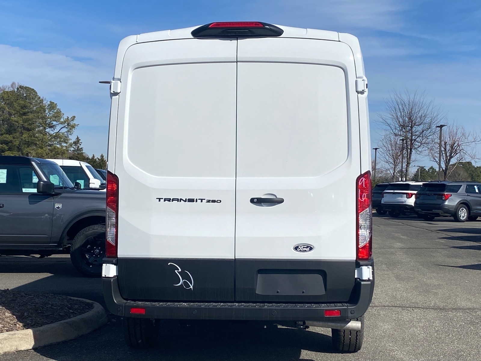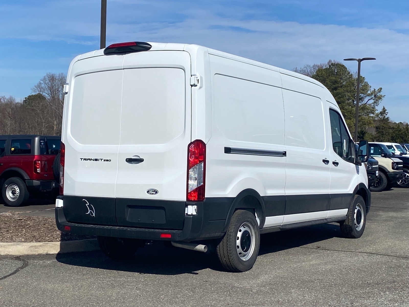 Oxford White 2026 Ford Transit-250 RWD 10-Speed Automatic with Overdrive 3.5L V6 Flex Fuel Ford Connectivity Package (1-Year Included), Order Code 101A (3.73 Axle Ratio, AM/FM Stereo, Dark Palazzo Gray Vinyl Bucket Seats, SYNC 4, Vinyl Front Bucket Seats, and Wheels: 16Silver Steel with Black Hubcap), 4 Speakers, 4-Wheel Disc Brakes, ABS brakes, Air Conditioning, AM/FM radio, Apple CarPlay/Android Auto, Auto High-beam Headlights, Back Up Alarm, Brake assist, Delay-off headlights, Driver door bin, Drivers Seat Mounted Armrest, Dual front impact airbags, Dual front side impact airbags, Electronic Stability Control, Emergency communication system: 911 Assist, Exterior Parking Camera Rear, Front anti-roll bar, Front Bucket Seats, Front License Plate Bracket, Front reading lights, Front wheel independent suspension, Full Rear Compartment Lighting, Fully automatic headlights, Heavy-Duty Load Floor & Scuff Plate Protection Pkg, Heavy-Duty Scuff Plate Kit, Illuminated entry, Low tire pressure warning, Navigation system: Connected Navigation, Occupant sensing airbag, Overhead airbag, Panic alarm, Passenger cancellable airbag, Passenger door bin, Power door mirrors, Power steering, Power windows, Rain sensing wipers, Remote keyless entry, Speed control, Steering wheel mounted audio controls, Tachometer, Telescoping steering wheel, Tilt steering wheel, Traction control, and Variably intermittent wipers. Price includes: $2500 - Retail Customer Cash. Exp. 03/31/2026