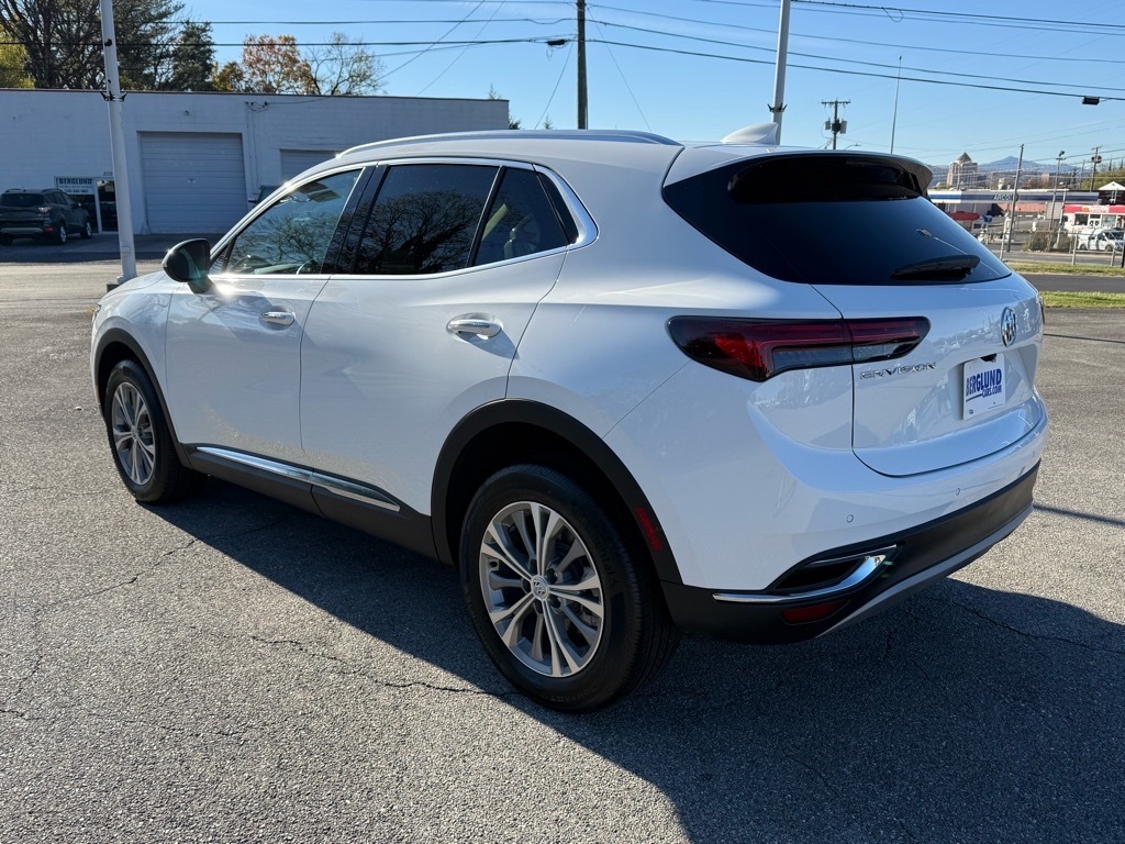Vehicle Details2023 Buick Envision Preferred - low-mileage luxury crossover in Roanoke, VA! This handsome 2023 Buick Envision Preferred pairs a fuel-efficient 2.0L 4-cylinder gasoline engine with smooth front-wheel drive for confident daily commuting and highway cruising. With only 15,138 miles and CARFAX 1-Owner status, this SUV delivers exceptional value and peace of mind. Comfort and convenience come standard: remote start for climate-ready cabin comfort, a heated steering wheel for chilly mornings, and a back-up camera to simplify parking and tight maneuvers. Safety features include Lane Keep Assist to help maintain lane position on long trips, contributing to a more relaxed driving experience. This Buick Envision blends upscale interior appointments and practical technology with a refined ride quality youd expect from Buick - at the best price in the Roanoke area. Low mileage, one-owner history, and a strong feature set make this Preowned Buick Envision an outstanding choice for buyers seeking reliability, comfort, and savings. Located in Roanoke, VA, this 2023 Buick Envision Preferred wont last long at this competitive price. Schedule a test drive today to experience the smooth performance, modern safety features, and well-maintained condition that set this low-mileage Buick Envision apart.EquipmentNever get into a cold vehicle again with the remote start feature on the Buick Envision. This models Lane Departure Warning helps keep you in your lane. The vehicle features a hands-free Bluetooth phone system. The leather seats in this model are a must for buyers looking for comfort, durability, and style. This 1/2 ton suv is pure luxury with a heated steering wheel. The vehicle comes equipped with Android Auto for seamless smartphone integration on the road. This model stays safely in its lane with Lane Keep Assist. The vehicle keeps you comfortable with Auto Climate. Protect it from unwanted accidents with a cutting edge backup camera system. This vehicle is a certified CARFAX 1-owner. Our dealership has already run the CARFAX report and it is clean. A clean CARFAX is a great asset for resale value in the future. This unit offers Apple CarPlay for seamless connectivity. This 1/2 ton suv embodies class and sophistication with its refined white exterior.PackagesComfort and Convenience Package: Hands Free Power Programmable Liftgate; Heated Steering Wheel; Automatic Air Circulation/air Quality Sensor; Re