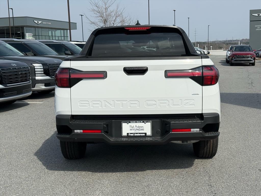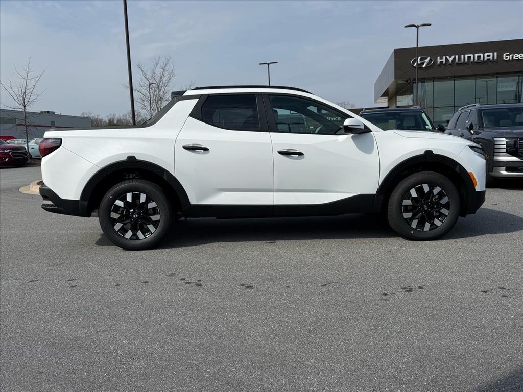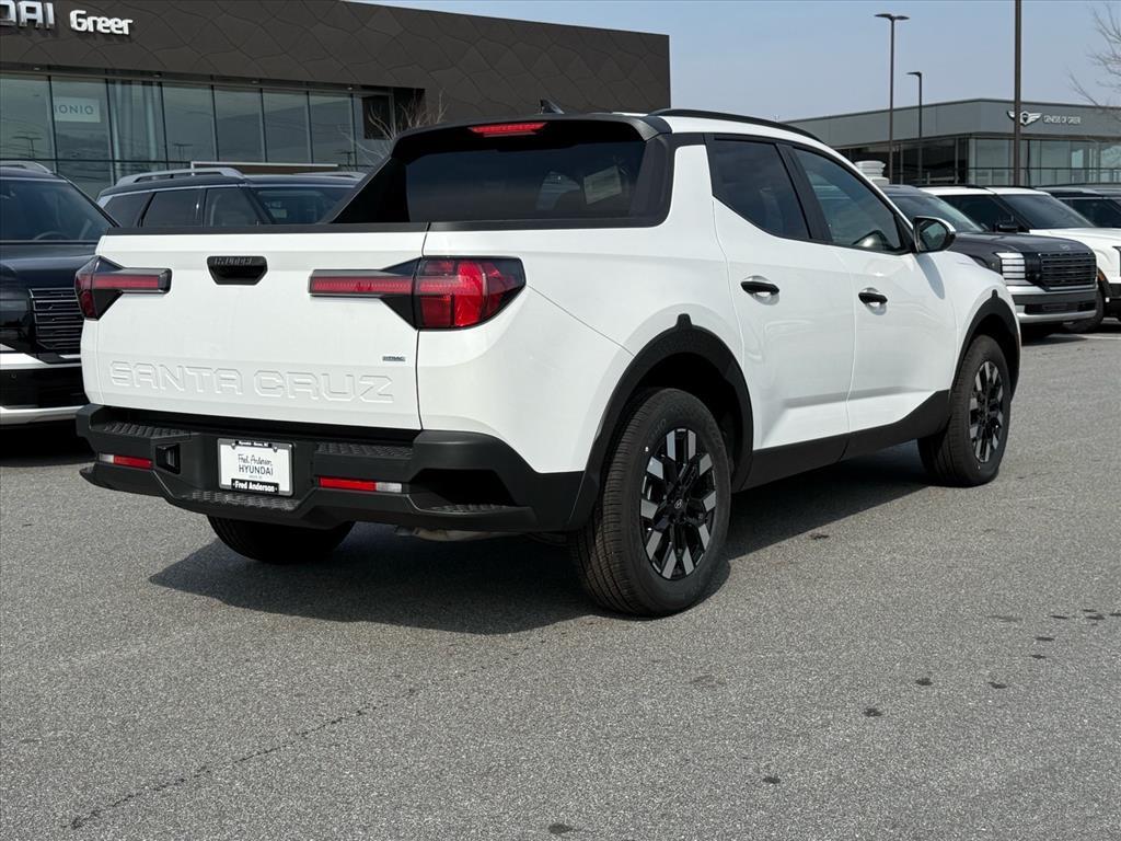 2026 Hyundai Santa Cruz SEL Atlas White 4D Crew Cab AWD 8-Speed Automatic with SHIFTRONIC 2.5L I4 21/29 City/Highway MPG 21/29 City/Highway MPG Thank you for checking out our website at www.HyundaiOfGreer.com where we help you find the best vehicle that meets your needs wrapped in a deal you will not want to walk away from. If you have any questions please call us at 864-800-0851 or visit us in person at Fred Anderson Hyundai of Greer located at 13740 East Wade Hampton Blvd Greer, SC 29651 to learn more! Qualifying New and Used vehicles receive our full Anderson Family Plan at no additional cost to you which includes our: Peace of Mind 3-Day Vehicle Exchange*Lifetime Oil Changes*Service Loaners*Loyalty Discounts after driving your purchase for 50,000 miles. All prices exclude tax, tag, license, title, and registration for your state; and our admin ($499) fees. All vehicle internet pricing is subject to change and requires standard financing. From time to time in the transfer of data on the internet, there are errors. Dealer is not responsible for errors in advertised prices. See dealer for complete details. Option Group 01, 18x 7.5J Alloy Wheels, 4-Wheel Disc Brakes, 4.081 Axle Ratio, 6 Speakers, ABS brakes, Air Conditioning, All Season Fitted Liners, Alloy wheels, AM/FM radio: SiriusXM, Apple CarPlay & Android Auto, Auto High-beam Headlights, Auto-leveling suspension, Automatic temperature control, Bed Cargo Net, Brake assist, Bumpers: body-color, Cargo Net, Carpeted Floor Mats, Compass, Delay-off headlights, Driver door bin, Driver vanity mirror, Dual front impact airbags, Dual front side impact airbags, Electronic Stability Control, Emergency communication system: None, Exterior Parking Camera Rear, First Aid Kit, Four wheel independent suspension, Front anti-roll bar, Front Bucket Seats, Front Center Armrest, Front dual zone A/C, Front reading lights, Fully automatic headlights, H-Tex Leatherette Seat Trim, Heated door mirrors, Heated Front Bucket Seats, Heated front seats, Illuminated entry, Low tire pressure warning, Occupant sensing airbag, Outside temperature display, Overhead airbag, Overhead console, Panic alarm, Passenger door bin, Passenger vanity mirror, Power door mirrors, Power driver seat, Power steering, Power windows, Radio data system, Radio: AM/FM/HD Audio System, Rear anti-roll bar, Rear reading lights, Rear side impact airbag, Rear step bumper, Rear window defroster, Remote keyless entry, Roadside Assistance Kit, Security system, S