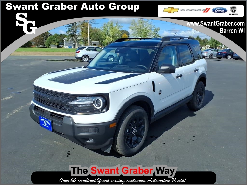 The Ford Bronco Sport Big Bend is a 2025 all wheel drive SUV that has been designed to provide the ultimate in performance and comfort. Boasting a 1.5 liter 3 cylinder turbocharged engine, this vehicle has an oxford white yz exterior and an impressive fuel economy of 25 mpg in the city and 30 mpg on the highway. It has been crash tested to achieve a 5 out of 5 stars rating, and comes with a host of features including touch screen display, Bluetooth audio connection, blind spot sensor, hill start assist, on demand four wheel drive, and Bluetooth phone connectivity. With its combination of power, performance, and safety features, the Ford Bronco Sport Big Bend is sure to be a popular choice for car buyers in the future. Contact Details: Swant Graber Ford, 1697 East Division, Barron, WI, 54812, internetleads@swantgraber.com, 8008589443.