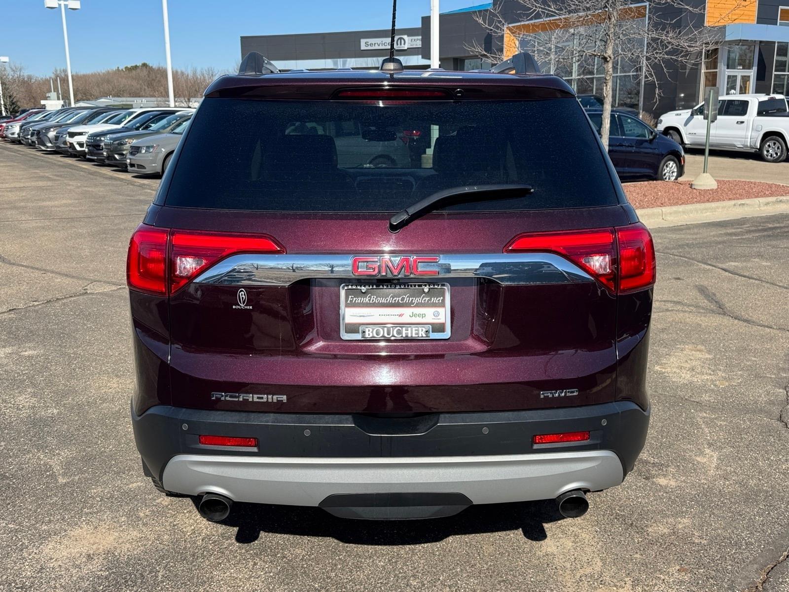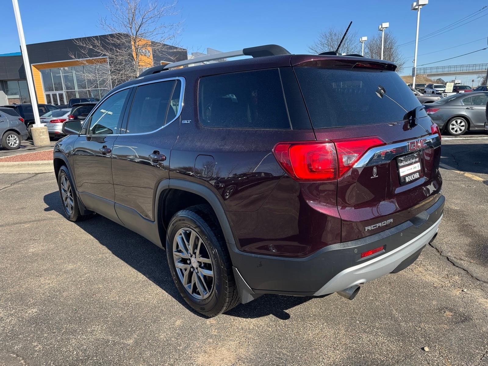 Recent Arrival! 2017 GMC Acadia SLT-1 CARFAX One-Owner. Clean CARFAX. AWD, Jet Black Leather, 3rd row seats: split-bench, Alloy wheels, Apple CarPlay/Android Auto, Automatic temperature control, Compass, Exterior Parking Camera Rear, Front dual zone A/C, Front fog lights, Fully automatic headlights, Heated front seats, Navigation System, Perforated Leather-Appointed Seat Trim, Power driver seat, Power Liftgate, Power passenger seat, Rear air conditioning, Remote keyless entry, Steering wheel mounted audio controls. This vehicle includes Boucher SmartCare: 3 Complimentary Oil Changes, No Cost Brake Inspection, No Cost Tire Inspection, 100-point Inspection, Carfax Vehicle History Report, Courtesy Transportation, and many discounts/coupons towards future services - a value of more than $1,000! Price excludes tax, title, license, service fee.