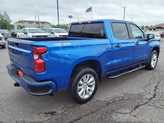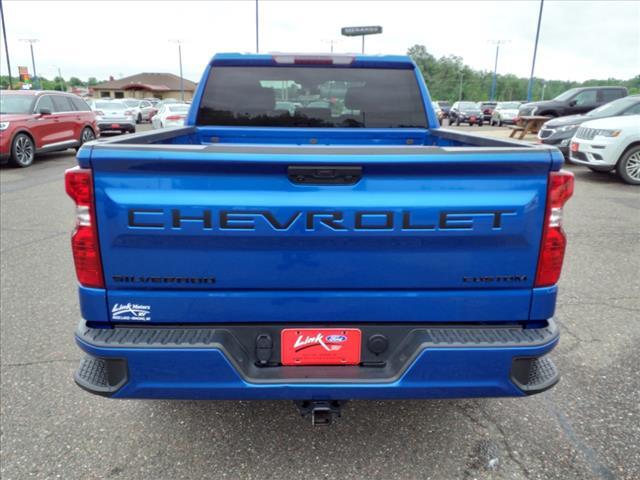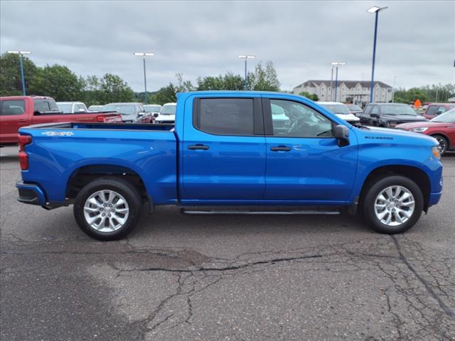 2023 Chevrolet Silverado 1500 2.7L Turbo 8-Speed Automatic 18/21 City/Highway MPG Custom Crew Cab 4WD Glacier Blue Metallic ** BACK-UP CAMERA, **ACCIDENT FREE AUTO CHECK REPORT, **BLUETOOTH, Silverado 1500 Custom Crew Cab 4WD, 4D Crew Cab, 2.7L Turbo, 8-Speed Automatic, 4WD, Glacier Blue Metallic, Black Cloth, 10-Way Power Driver Seat w/Lumbar, 120-Volt Bed Mounted Power Outlet, 120-Volt Instrument Panel Power Outlet, 3.5 Monochromatic Display Driver Info Center, 4-Wheel Disc Brakes, 6 Speakers, 6-Speaker Audio System, ABS brakes, Air Conditioning, Alloy wheels, AM/FM radio: SiriusXM, Apple CarPlay/Android Auto, Auto High-beam Headlights, Automatic Emergency Braking, Black Name Plates (LPO), Black Tailgate CHEVROLET Lettering (LPO), Bluetooth For Phone, Brake assist, Bumpers: body-color, Chevrolet Connected Access Capable, Cloth Seat Trim, Color-Keyed Carpeting Floor Covering, Compass, Custom Convenience Package, Custom Value Package, Dark Essentials Package (LPO), Deep-Tinted Glass, Delay-off headlights, Driver door bin, Driver vanity mirror, Dual front impact airbags, Dual front side impact airbags, Dual Rear USB Ports (Charge Only), Electric Rear-Window Defogger, Electrical Steering Column Lock, Electronic Cruise Control, Electronic Stability Control, EZ Lift Power Lock & Release Tailgate, Following Distance Indicator, Forward Collision Alert, Front anti-roll bar, Front Black Bowtie Emblem (LPO), Front Center Armrest w/Storage, Front Frame-Mounted Black Recovery Hooks, Front Pedestrian Braking, Front reading lights, Front Rubberized Vinyl Floor Mats, Front wheel independent suspension, Fully automatic headlights, HD Rear Vision Camera, Heated door mirrors, High Capacity Suspension Package, Hitch Guidance, Illuminated entry, IntelliBeam Automatic High Beam On/Off, Lane Keep Assist w/Lane Departure Warning, LED Cargo Area Lighting, Low tire pressure warning, Manual Tilt Wheel Steering Column, Not Equipped w/Rear USB Ports, Not Equipped w/Steering Column Lock, Occupant sensing airbag, OnStar & Chevrolet Connected Services Capable, Outside temperature display, Overhead airbag, Overhead console, Panic alarm, Passenger door bin, Passenger vanity mirror, Power door mirrors, Power driver seat, Power Front Windows w/Driver Express Up/Down, Power Front Windows w/Passenger Express Down, Power Rear Windows w/Express Down, Power steering, Power windows, Preferred Equipment Group 1CX, Premium audio system: Chevrolet Infotainment 3, Radio data system, Radio: Che