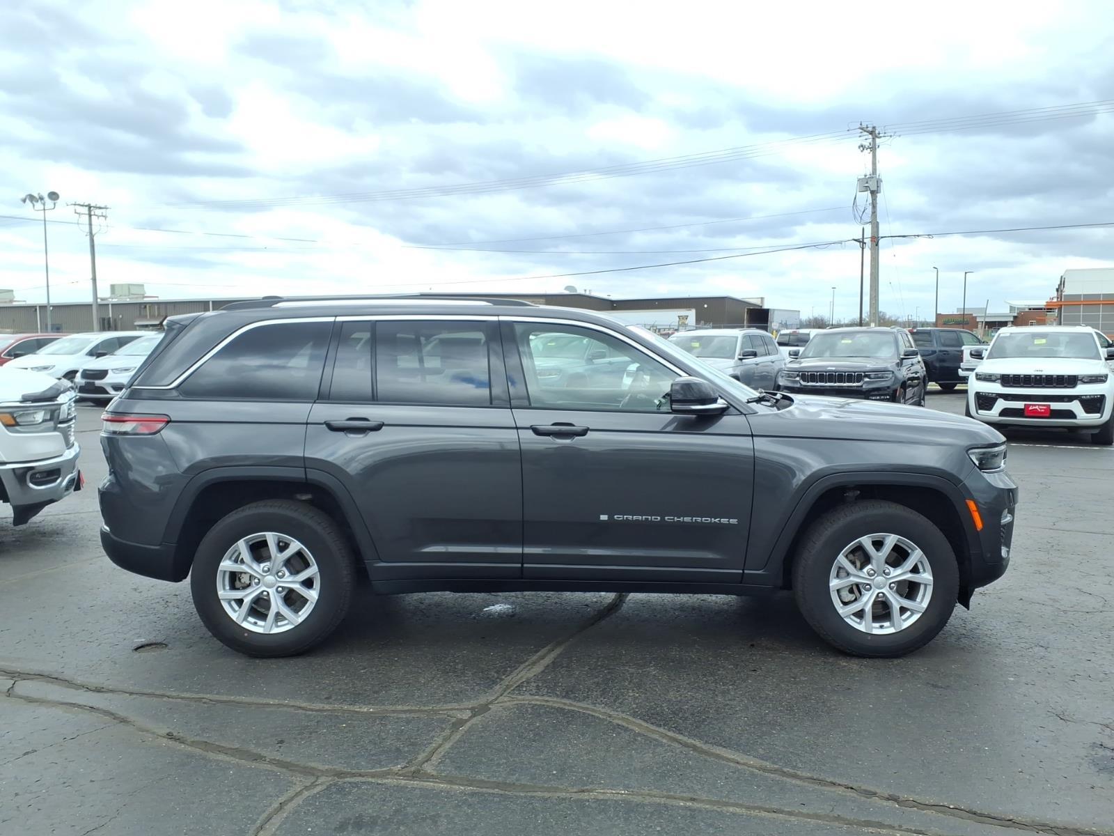 Recent Arrival! 2023 Jeep Grand Cherokee Limited 4X4 Baltic Gray Metallic Clearcoat ** BACK-UP CAMERA, 4WD, 220 Amp Alternator, 2nd-Row Manual Window Shades, 4-Wheel Disc Brakes, 6 Speakers, ABS brakes, Active Noise Control System, Air Conditioning, Alloy wheels, AM/FM radio: SiriusXM with 360L, Anti-whiplash front head restraints, Audio memory, Auto High-beam Headlights, Auto-Dimming Exterior Driver Mirror, Automatic Headlamp Levelling System, Automatic temperature control, Brake assist, Bumpers: body-color, Capri Leatherette Seats, Capri Leatherette w/Axis II Seats, Compass, Delay-off headlights, Driver door bin, Driver vanity mirror, Dual front impact airbags, Dual front side impact airbags, Electronic Stability Control, Emergency communication system, Four wheel independent suspension, Front anti-roll bar, Front Bucket Seats, Front Center Armrest w/Storage, Front dual zone A/C, Front fog lights, Front License Plate Bracket, Front reading lights, Front/Rear Doors & Liftgate w/Passive Entry, Fully automatic headlights, Garage door transmitter, Heated door mirrors, Heated front seats, Heated rear seats, Heated steering wheel, Heavy-Duty Engine Cooling, Illuminated entry, Integrated Off-Road Camera, Intersection Collision Assist System, Knee airbag, Low tire pressure warning, Luxury Tech Group II, Memory seat, Memory Steering Column, Molded In Color Black/Gloss Black Roof Rails, Navigation System, Normal Duty Suspension, Occupant sensing airbag, Outside temperature display, Overhead airbag, Overhead console, Panic alarm, ParkSense Front/Rear Park Assist w/Stop, ParkView Rear Back-Up Camera, Passenger door bin, Passenger vanity mirror, Power door mirrors, Power driver seat, Power Liftgate, Power passenger seat, Power steering, Power Tilt/Telescope Steering Column, Power windows, Quick Order Package 23E, Radio data system, Radio: Uconnect 5 Nav w/10.1 Display, Rain Sensitive Windshield Wipers, Rear anti-roll bar, Rear Back-Up Camera Washer, Rear Load Levelling Suspension, Rear reading lights, Rear window defroster, Rear window wiper, Rearview Autodim Digital Display Mirror, Remote keyless entry, Security system, Speed control, Speed-Sensitive Wipers, Split folding rear seat, Spoiler, Steering wheel mounted audio controls, Surround View Camera System, Tachometer, Telescoping steering wheel, Tilt steering wheel, Traction control, Trailer Hitch Zoom, Trailer Tow Prep Group (B) (DISC), Trip computer, Turn signal indicator mirrors, Variably intermittent wipe