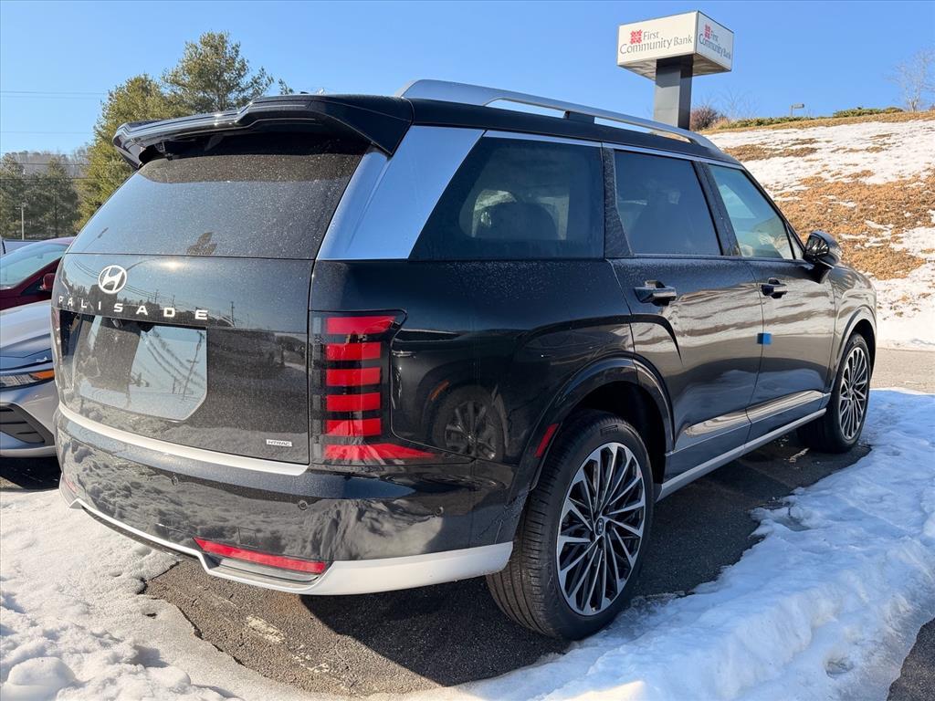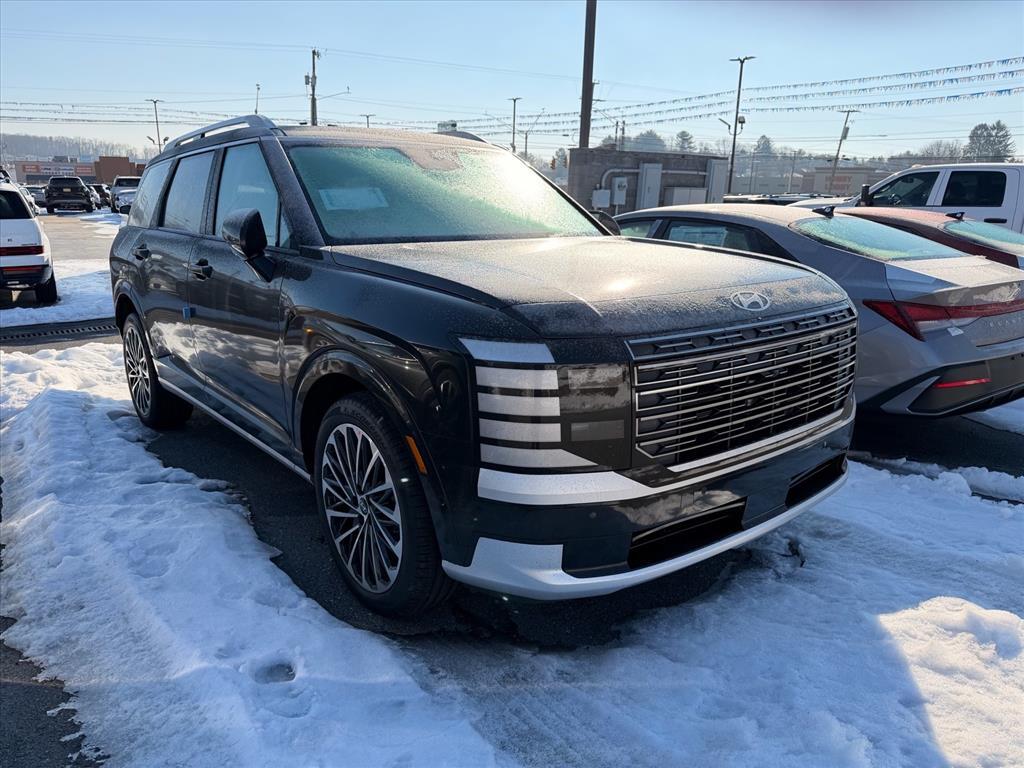 Abyss Black Pearl 2026 Hyundai Palisade Hybrid Calligraphy AWD 6-Speed Automatic 2.5L Turbocharged GDI 4-Cylinder Hybrid This Vehicle Includes the Following Features:, 2.5L Turbocharged GDI 4-Cylinder Hybrid. Option Group 01, 2.5L Turbocharged GDI 4-Cylinder Hybrid, 100W Charging Cable, 14 Speakers, 3rd row seats: split-bench, 4-Wheel Disc Brakes, ABS brakes, Air Conditioning, Alloy wheels, AM/FM radio: SiriusXM, Apple CarPlay & Android Auto, Audio memory, Auto High-beam Headlights, Auto-dimming door mirrors, Auto-dimming Rear-View mirror, Auto-leveling suspension, Automatic temperature control, Brake assist, Bumpers: body-color, Cargo Cover, Cargo Net, Cargo Tray, Carpeted Floor Mats, Compass, Delay-off headlights, Driver door bin, Driver vanity mirror, Dual front impact airbags, Dual front side impact airbags, Electronic Stability Control, Emergency communication system: None, Exterior Parking Camera Rear, First Aid Kit, Four wheel independent suspension, Front anti-roll bar, Front Bucket Seats, Front Center Armrest, Front dual zone A/C, Front reading lights, Fully automatic headlights, Garage door transmitter: HomeLink, Genuine wood console insert, Genuine wood dashboard insert, Heads-Up Display, Heated and Ventilated Front Bucket Seats, Heated door mirrors, Heated front seats, Heated rear seats, Heated steering wheel, HVAC memory, Illuminated entry, Knee airbag, Leather steering wheel, Low tire pressure warning, Memory seat, Navigation System, Occupant sensing airbag, Outside temperature display, Overhead airbag, Overhead console, Panic alarm, Passenger door bin, Passenger vanity mirror, Power door mirrors, Power driver seat, Power Liftgate, Power moonroof, Power passenger seat, Power steering, Power windows, Premium Nappa Leather Seat Trim, Radio data system, Radio: Infotainment Navigation System, Rain sensing wipers, Rear air conditioning, Rear anti-roll bar, Rear audio controls, Rear reading lights, Rear side impact airbag, Rear window defroster, Rear window wiper, Reclining 3rd row seat, Remote keyless entry, Security system, Speed control, Split folding rear seat, Spoiler, Steering wheel mounted audio controls, Tachometer, Telescoping steering wheel, Tilt steering wheel, Traction control, Trip computer, Turn signal indicator mirrors, Variably intermittent wipers, Ventilated front seats, Ventilated rear seats, and Wheels: 21x 8.5J Alloy. At Friendship Hyundai of Beckley, we believe that purchasing a vehicle should be a rewarding and enjoyable exp