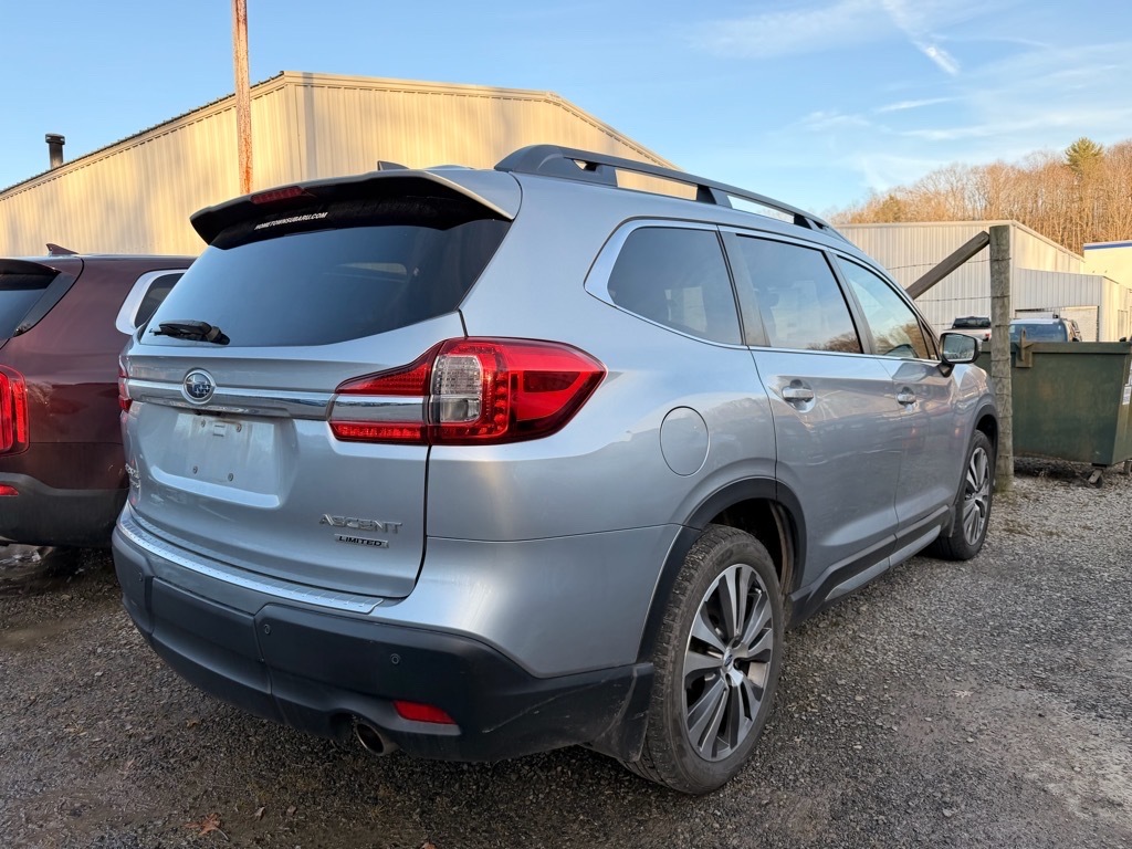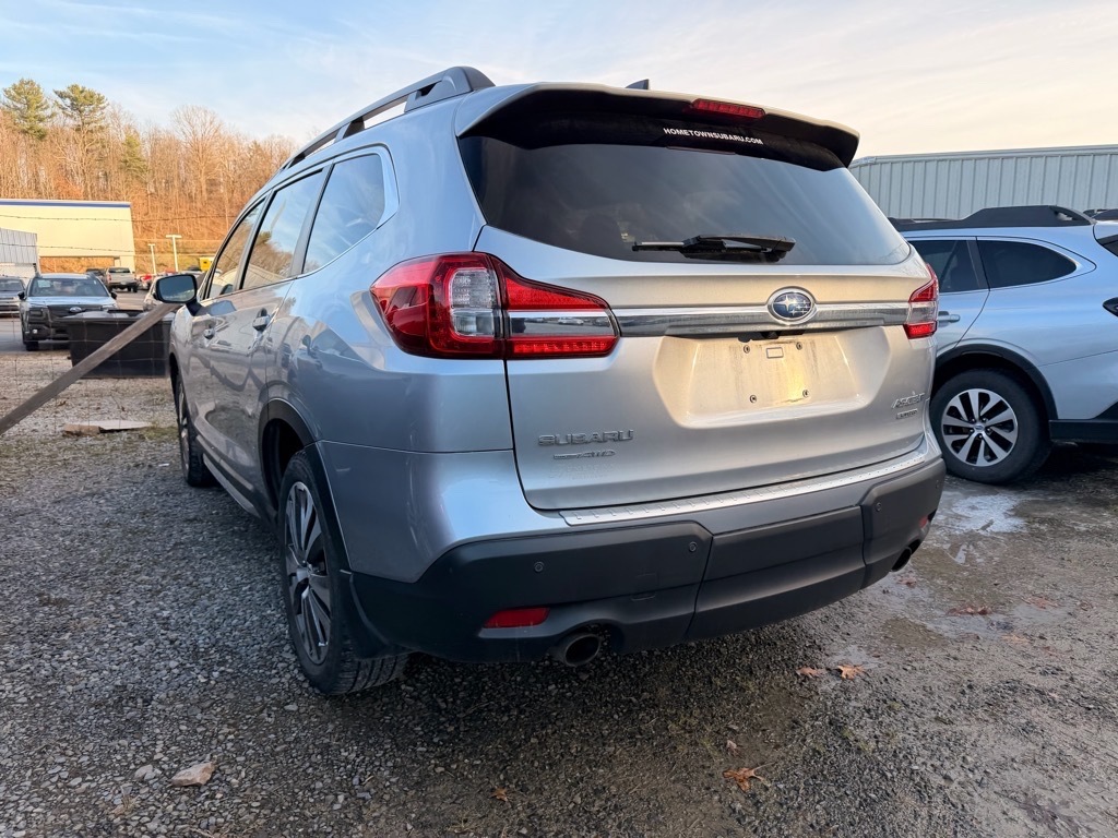 Ice Silver Metallic 2022 Subaru Ascent Limited AWD Lineartronic CVT 2.4L 4-Cylinder DOHC 16V 20/26 City/Highway MPG Technology Package (Cargo Area Cover, Dual Glass Panoramic Power Moonroof, and Radio: Subaru STARLINK 8.0Multimedia Nav System), 3rd row seats: bench, 4-Wheel Disc Brakes, 6 Speakers, ABS brakes, Aero Crossbar Set, Air Conditioning, All-Weather Floor Liners, Alloy wheels, AM/FM radio: SiriusXM, Auto High-beam Headlights, Auto-dimming Rear-View mirror, Automatic temperature control, Axle Ratio: 4.44, Brake assist, Bumpers: body-color, Cargo Tray, CD player, Compass, Cup Holder Insert, Delay-off headlights, Driver door bin, Driver vanity mirror, Dual front impact airbags, Dual front side impact airbags, Electronic Stability Control, Emergency communication system: STARLINK Safety and Security (Subscription Required), Exterior Parking Camera Rear, Four wheel independent suspension, Front anti-roll bar, Front Bucket Seats, Front Center Armrest, Front dual zone A/C, Front fog lights, Front reading lights, Fully automatic headlights, Garage door transmitter: HomeLink, Heated door mirrors, Heated Front Bucket Seats, Heated front seats, Heated rear seats, Heated steering wheel, Illuminated entry, Knee airbag, Low tire pressure warning, Map & Reading Lights LED Upgrade - 6 Bulb Kit, Memory seat, Occupant sensing airbag, Outside temperature display, Overhead airbag, Overhead console, Panic alarm, Passenger door bin, Passenger vanity mirror, Perforated Leather-Trimmed Upholstery, Power door mirrors, Power driver seat, Power Liftgate, Power passenger seat, Power steering, Power windows, Radio data system, Radio: Subaru STARLINK 8.0Multimedia Plus System, Rear air conditioning, Rear anti-roll bar, Rear Bumper Cover, Rear reading lights, Rear window defroster, Rear window wiper, Reclining 3rd row seat, Remote keyless entry, Security system, Speed control, Splash Guards, Split folding rear seat, Spoiler, STARLINK/Apple CarPlay/Android Auto, Steering wheel mounted audio controls, Tachometer, Telescoping steering wheel, Tilt steering wheel, Traction control, Trip computer, Turn signal indicator mirrors, Variably intermittent wipers, and Wheels: 20x 7.5 J Dk Gray Alloy w/Machine Finish.