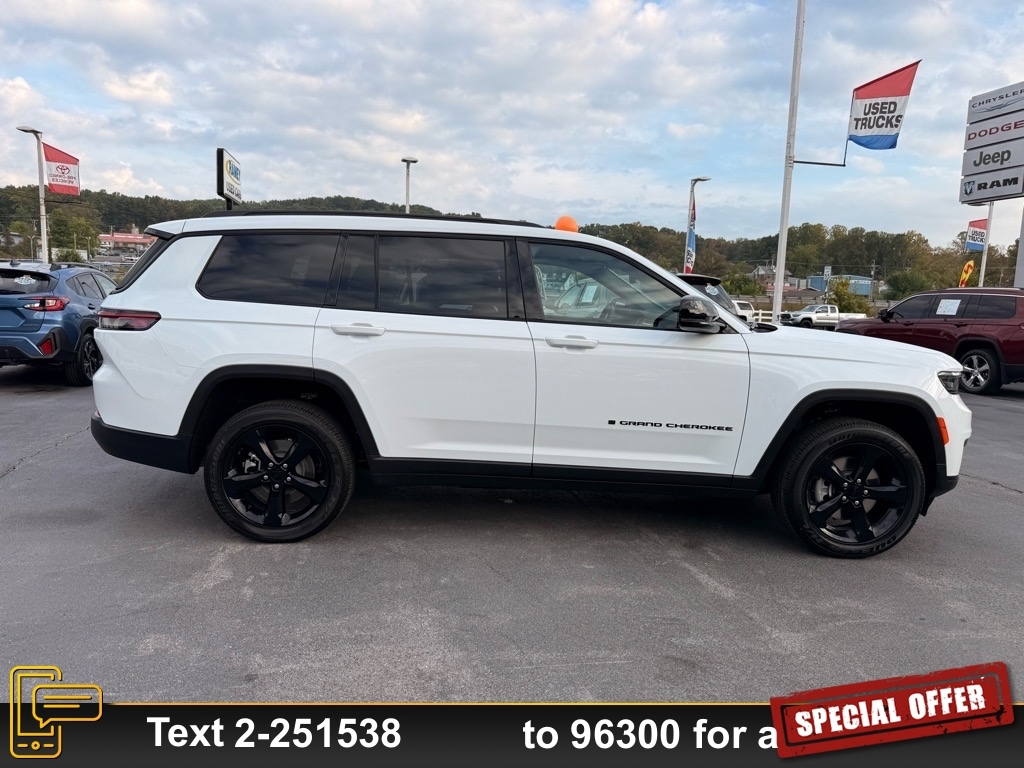 2025 Jeep Grand Cherokee L Altitude X 8-Speed Automatic 3.6L V6 24V VVT LIFE TIME NO CHARGE STATE INSPECTIONS FOR WEST VIRGINIA AND VIRGINIA RESIDENTS. Internet price includes manufacturer incentives and dealer discounts. Tax, Title, Tags and documentary fee of $575 not included in price. Additional offers may be available. See Dealer for Details. Price includes: $2000 - 2025 National Retail Bonus Cash . Exp. 11/03/2025 $500 - 2025 National Jeep Monopoly Money Bonus Cash . Exp. 11/03/2025